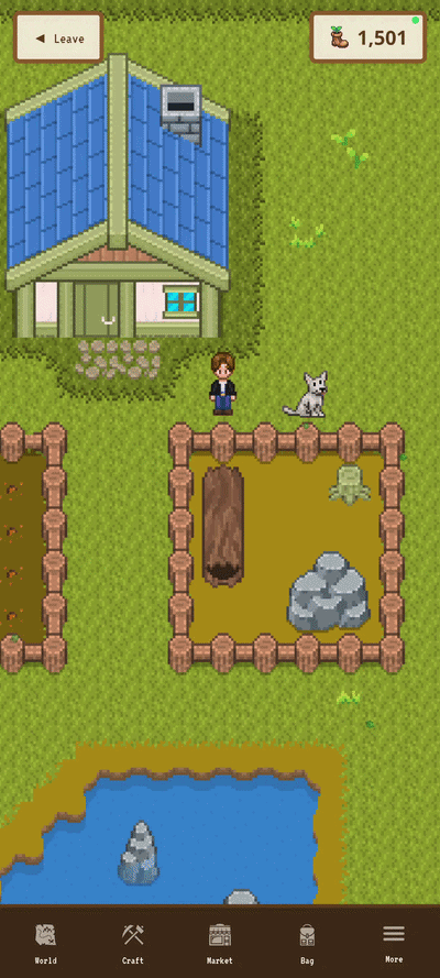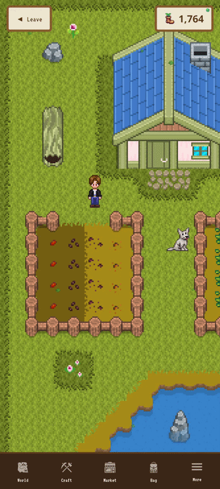 The little details are what make it feel right. Your footsteps sound different on stone paths versus soft crop soil versus grass. When you plant something, you see the seeds scatter. When you water, blue droplets fall gently over the crop. When you harvest, items pop up and arc toward your bag. Everything has a little animation that makes it feel like you're actually there, tending to something that matters.